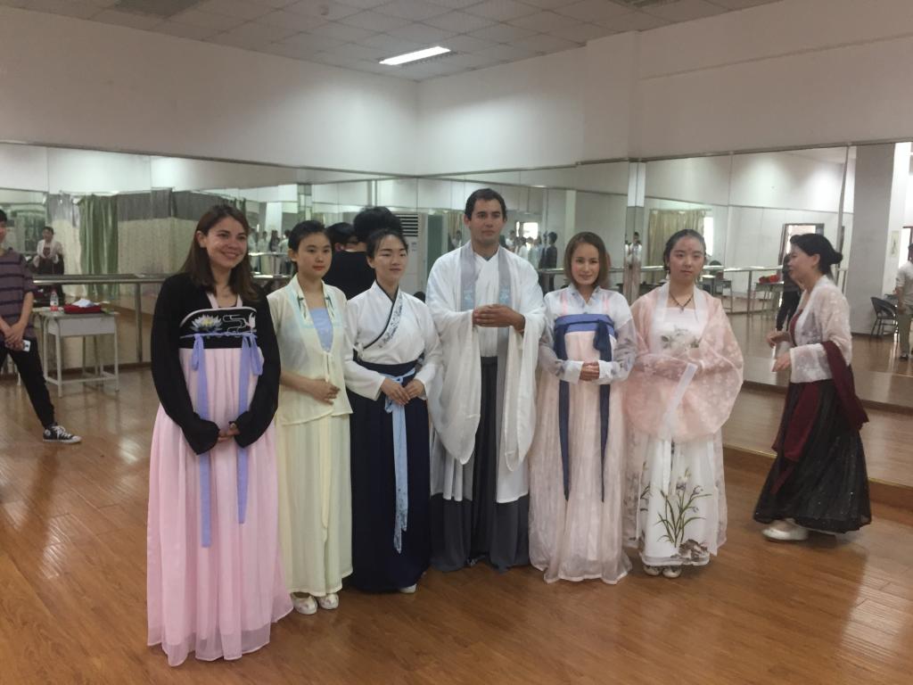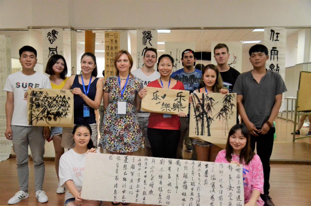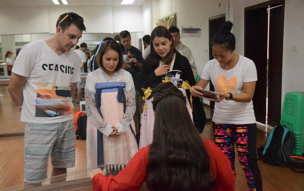 澳洲来华短期进修团的7名学生是分别来自澳大利亚、智利、捷克、巴西、柬埔寨、日本和尼日利亚七个国家。校团委为他们提供了一对一的志愿服务和社团活动展示。6个国学社团为进修团提供了内容丰富、形式多样的民俗文化表演课、汉语知识课、书法体验课,充分展现出中国传统文化的独特魅力。为促进跨文化交流,澳洲来华短期进修团与我校兵乓球协会、飞盘协会的同学进行了乒乓球、飞盘等体育项目的切磋。同时,商贸管理系、餐饮旅游学院还为他们开展了最具特色的工作坊交流会、电商物流课题体验、餐饮课堂体验、茶艺体验等活动。