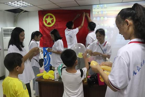 “绿色守望”实践团的志愿者为社区小朋友精心制作了环保宣讲幻灯片,通过小组知识竞赛、“我是小老师”等形式开展环保知识宣讲。为强化小朋友的动手能力和环保意识,志愿者与小朋友组成了“大手牵小手”环保行动我先行的街道清扫、小区清洁和垃圾分类、环保手工小课堂等活动。活动过程中,小朋友体验到了环卫工人为了干净整洁的环境在酷暑下劳动的艰辛。为此,志愿者与小朋友一起实施了“秘密计划”——环卫工人“最美变身”,通过化妆、装扮等帮助环卫工人展现独特的魅力,小朋友纷纷称赞他们是“美丽城市的化妆师”。