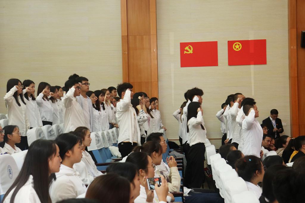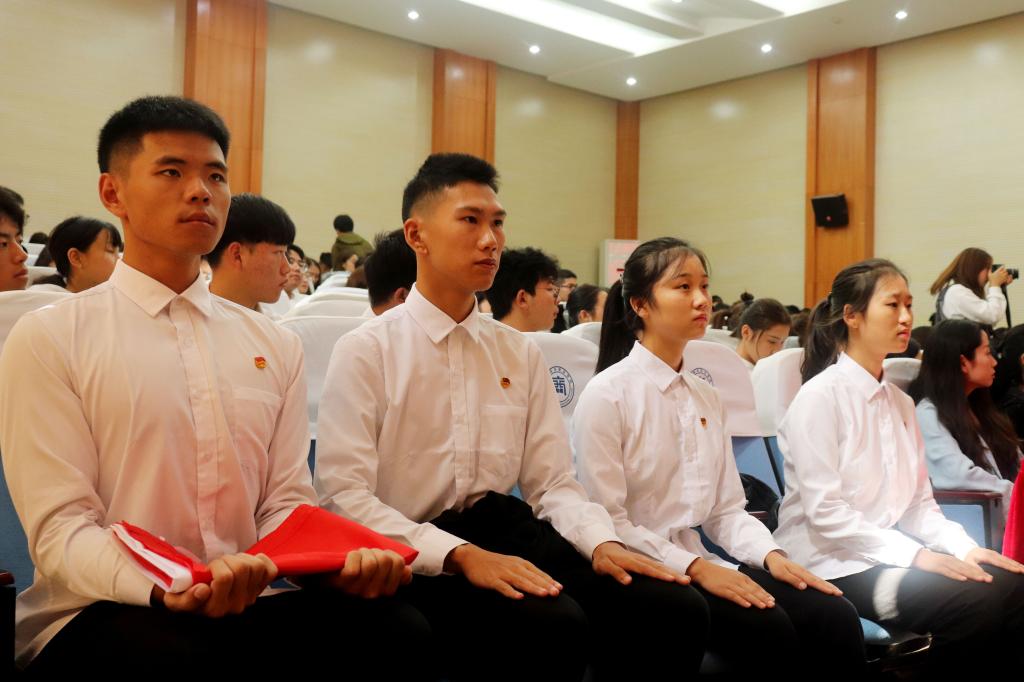 新团员入团仪式上,团委副书记陈小容宣读了2019年入团新团员名单。在团委学生副书记胡炼玉的带领下,新团员面向团旗庄严宣誓。入团介绍人代表陈杰宣读了《团章》中关于团员的权利和义务内容。新团员代表申灿表示,祖国在发展,社会在进步,在这个一切都在与日俱进的新时代,作为青年团员,必须坚定崇高的理想,刻苦学习,掌握技能和本领,努力当好党的后备军和助手。