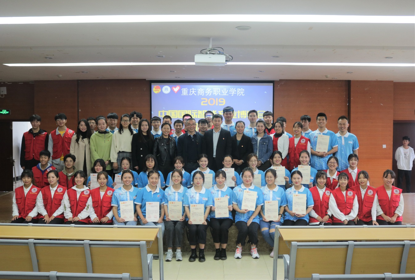 为积极培养大学生参与和践行社会主义核心价值观,校团委于2019年10月25日中午在学生活动中心320举行了2019智博会志愿工作总结交流大会,学工部部长胡大勇、团委书记、学工部副部长邓建、各院系团总支负责人、团委全体人员、“西洽会”、智博会志愿者以及学校公益组织志愿者代表300余人出席了活动。