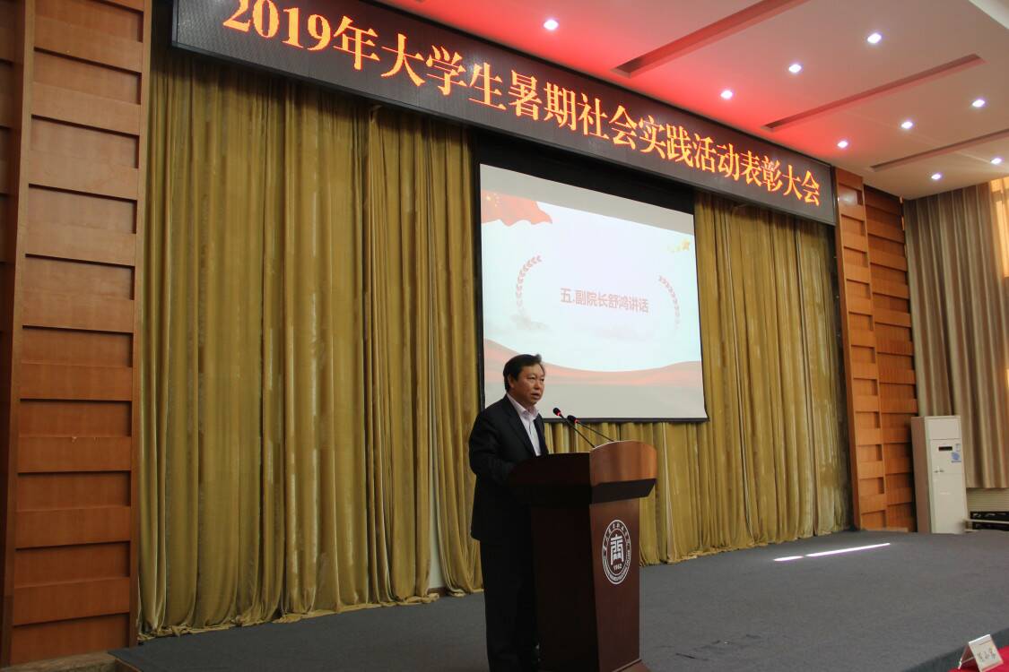 出席本次大会的有副院长舒鸿、学工部部长胡大勇、团委书记、学工部副部长邓健、团委全体人员、院系党总支负责人以及受表彰人员。此次大会由团委书记、学工部副部长邓健主持,大会分为四项议程,第一项全体人员齐唱《我和我的祖国》;大会第二项由学工部部长胡大勇宣读表彰决定;大会第三项由学校领导为暑期社会实践报告优秀学生代表、先进个人代表、优秀团队以及优秀指导老师颁奖;大会第四项由获奖的学生代表及教师代表发表获奖感言。最后由副院长舒鸿对本次社会实践活动表彰大会作讲话,舒院长提出以下三点希望:一、加强政治理论学习;二、养成良好的的生活、工作习惯;三、做好大学生职业规划。