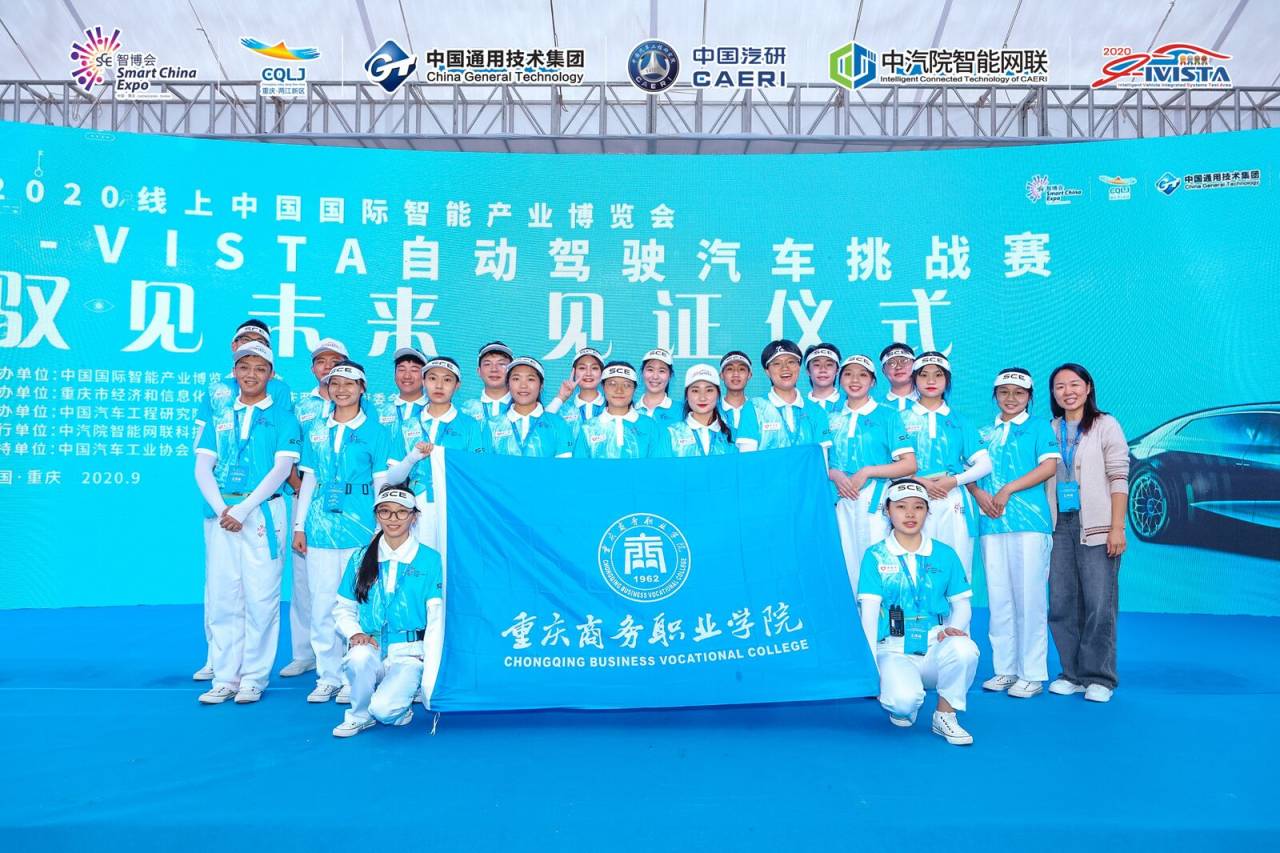 2020年9月13日,2020线上中国国际智能产业博览会i-VISTA自动驾驶汽车挑战赛(ADAS驾驶辅助系统挑战赛)在重庆礼嘉白云湖公园举行,赛事精彩纷呈。重庆商务职业学院选出22名志愿前往比赛现场,分别服务于车队、场景、虚拟仿真、会务、裁判组。