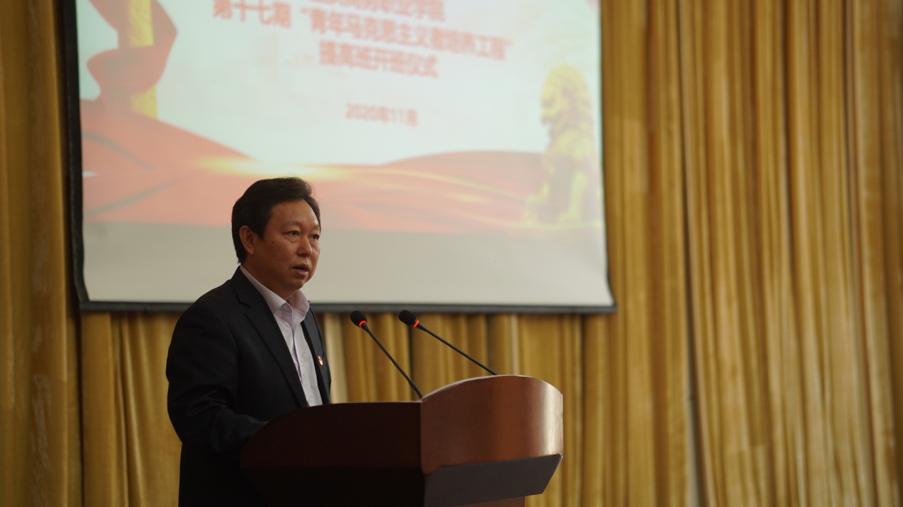 2020年11月17日,第十七期“青年马克思主义者培养工程”提高班开班仪式暨首场报告在第一会议室举行。副院长舒鸿、团委相关人员、各院系团总支部负责人以及110名青马提高班学员出席了仪式。仪式由团委书记邓健主持。