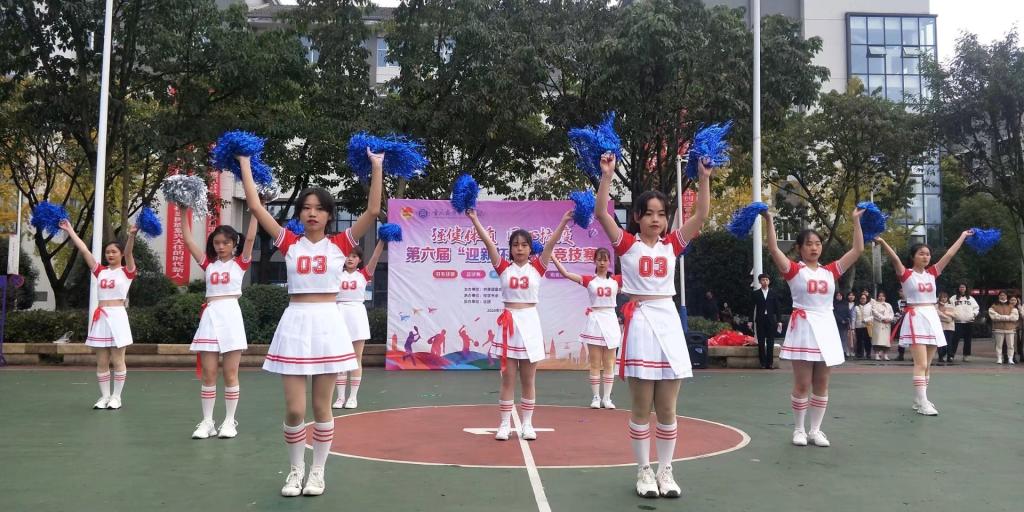 裁判员代表、参赛者代表分别发言。各院系带来了活力四射的啦啦操表演。
