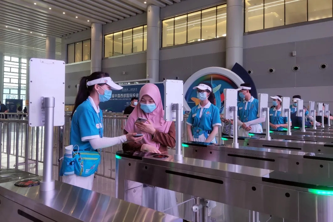 三、用专业务实的精神助力西洽会。西洽会期间,80名志愿者服务于商客接待、闸机接待、后勤保障、接机服务、酒店入住等岗位。他们相互协作、齐心同力,他们始终保持真诚的微笑,竭尽全力为来宾提供最优质的服务,展现最靓丽的风采,以自己微薄的力量为西洽会贡献青春力量,向建党百年华诞献礼。