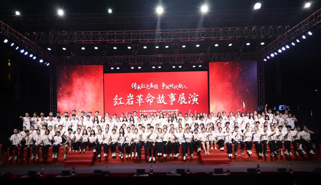2021年6月16日晚,“传承红色基因、争做时代新人”红岩革命故事展演活动在重庆商务职业学院举行。重庆红岩联线文化发展管理中心党委副书记、主任马奇柯,教育工作部部长周万炯,学校党委书记谭勇、副院长贾小波、副院长张荣、纪委书记杨守康,学校党政部门、院系负责人、第十八期“青马工程”提高班全体学员及师生代表3000余人共同观看了演出。