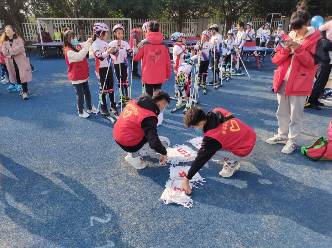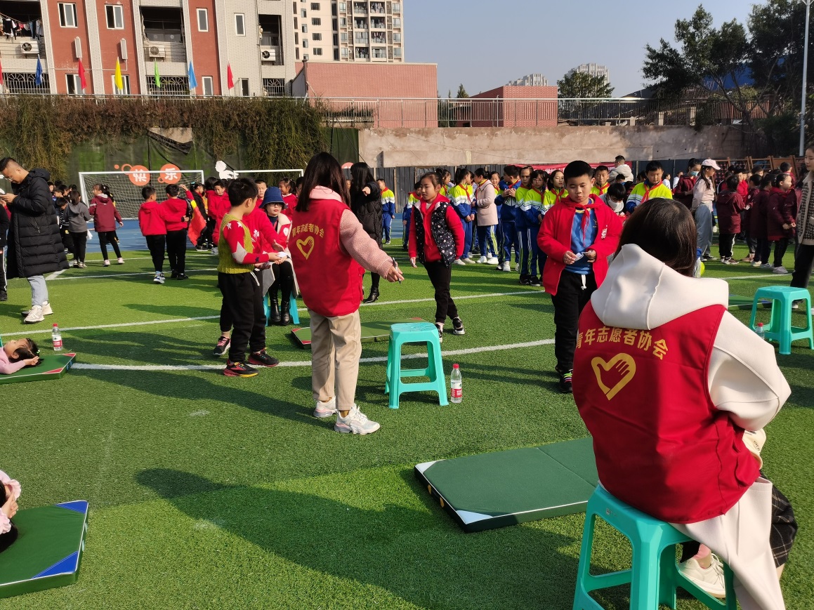 运动场上的健儿们顽强拼搏,展现了青少年该有的精神面貌。活动过程中,我校志愿者们坚守在自己的工作岗位上,始终保持着热情与耐心,身着红马甲穿梭在人群里,构成了一道道亮丽的风景线。