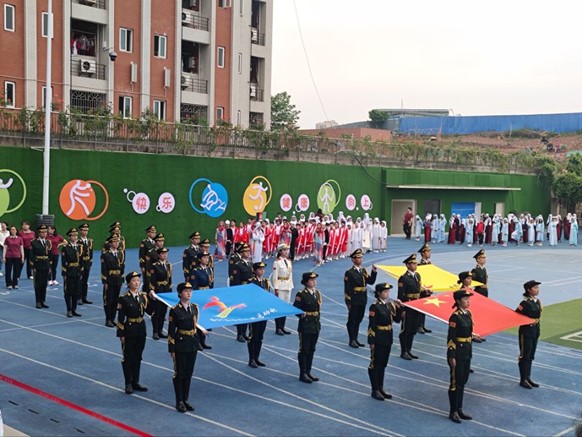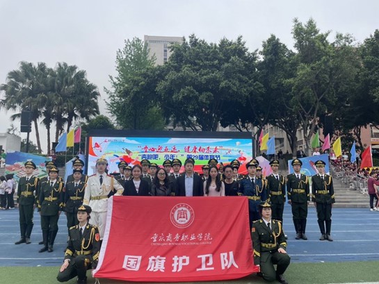 时代新声振强音,丰盈理论润人心。在向第二个百年奋斗目标进军的历史节点,为全面弘扬党的二十大精神,推动大中小学一体化共同体建设,落实立德树人的根本任务,4月13日上午,重庆商务职业学院第四届国旗护卫队参加了重庆大学城人民小学举办的体育节开幕仪式,我校团委书记和国旗护卫队指导老师受邀作为评委。