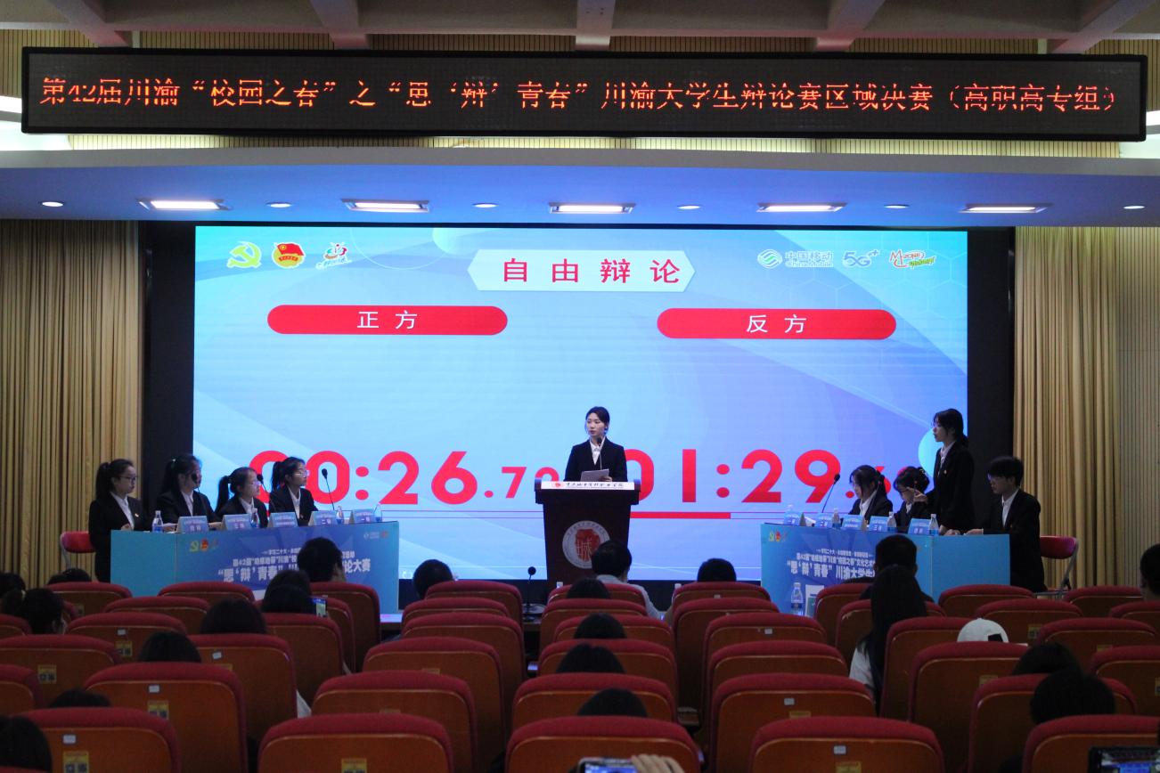 5月7日,由重庆市委宣传部、市教委、市教育工委、团市委、共青团四川省委共同主办的第42届重庆市校园之春川渝大学生辩论大赛圆满落幕。在高职高专组决赛中,我校凭借队员出色发挥,稳扎稳打,再次卫冕成功,实现该项赛事办赛历史上首个“三连冠”!一周后,我校将代表重庆市参加川渝地区总决赛,对战四川省高职高专组冠军队伍。