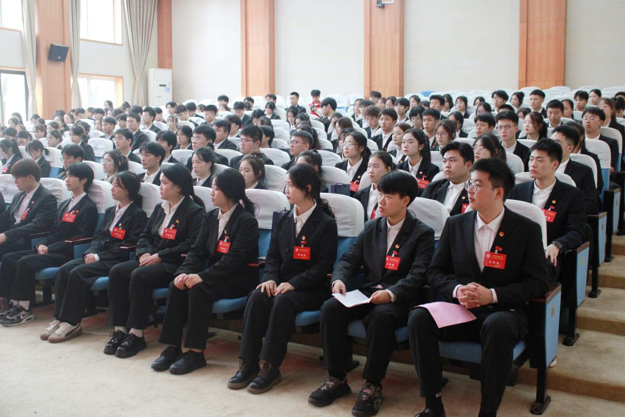 随后,舒院长向大会召开表示热烈祝贺,他在讲话中充分肯定了我校学生会过去一年工作取得的成绩。舒院长指出,2023年是全面贯彻党的二十大精神的开局之年,在这一年中,我校学生会坚持以习近平新时代中国特色社会主义思想为指导,认真贯彻落实学校党委和市学联要求,在校团委的指导下,勇于担当,履职尽责,学生会及全体代表要坚定理想信念,勇担时代使命。一是坚定想念、担当使命,争做民族复兴奋斗者。二是锤炼本领、提高素养,争做勇攀高峰的求索者。三是认真履职、自我革命,争做躬身笃行的服务者。四是陶冶情操、修身立德,争做崇德律己的接班人。