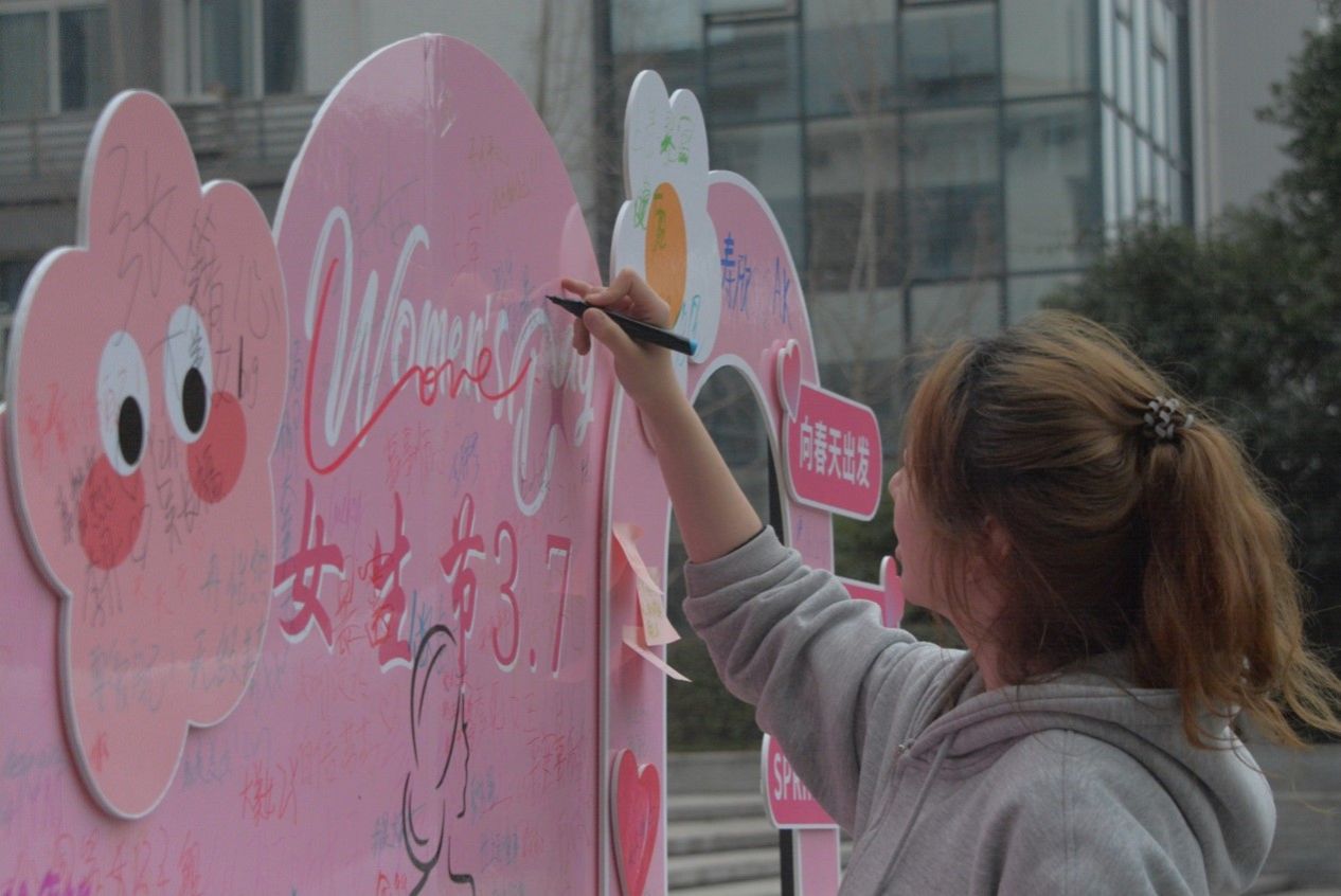 这次活动以关爱女生,展现女生风采为主要内容,通过开展 “寻找自己的芳华”打卡墙、“永不凋零的花朵”手工艺制作、“美妆·穿搭”小课堂分享等系列活动,充分发挥女生们的能动性。花朵制作环节,大家心灵手巧,互帮互助,享受着属于自己的节日快乐。