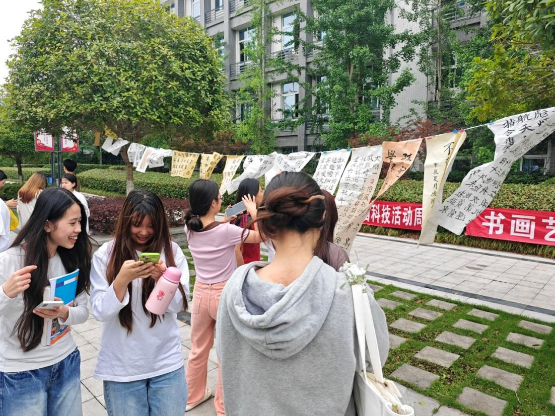 暖阳喜人,翰墨飘香,丹青争艳,溢彩重商。一簇簇绚丽的艺术之花盛开在重商的校园里。2024年5月29日-30日,我校开展了第一届科技周之书画展活动,通过科技巡展作品展示,参展的作品形式丰富,涵盖书法、国画、素描、水粉等多种形式,妙趣横生,创意十足。遒劲刚健的书法,妙手丹青的国画,惟妙惟肖的素描,浓淡相宜的水粉,奇思妙想的漫画……琳琅满目的作品,给同学们带来了视觉盛宴和美的享受。一幅幅作品,展现出同学们对科技的浓厚兴趣与深入思考,展现了我校学子的艺术修养和素质能力,抒发了同学们积极向上、锐意进取的精神风貌,激发着更多的同学在生活中发现美,用书画创造美。6月4日-7日将通过线上投票和评委评审的方式,将评选出优秀作品。此次书画展是我校素质教育的生动诠释,为学生提供了交流展示的平台,激发了学生对传统文化的热爱之情,培养了学生健康向上的审美情趣,促进了校园文化的进一步发展。