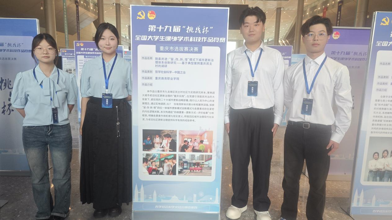 此次竞赛中,我校参赛团队充分发挥专业优势,经过市赛组委会审核和专家评委网络评审,我校科学发明制作类《一种基于MEMS技术的超灵敏加速度传感器》,以及哲学社会科学类《“Z世代”语境下:传统文化如和借数字媒体“破圈”吸引青少年——基于川渝28所中小学上千名青少年的实证调研》《国际消费中心城市的空间重构:重庆市区县夜经济非均衡发展及协同赋能研究》《刚柔并进:“留、改、拆、增”模式下城市更新治理体系创新研究——基于典型案例重庆民主村的调研》4个项目参加现场重庆市选拔赛决赛。