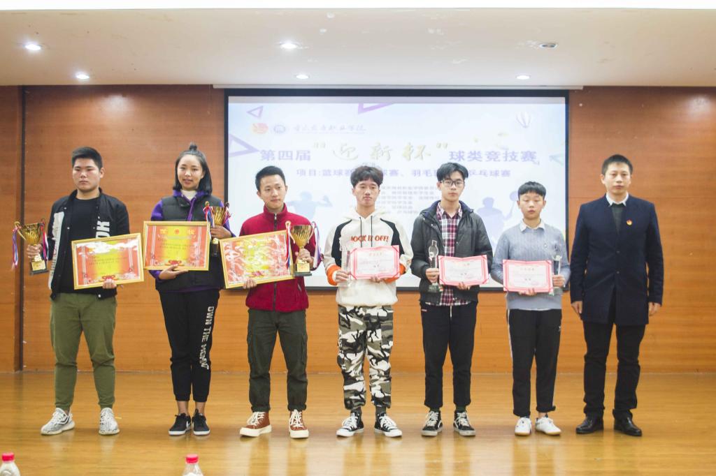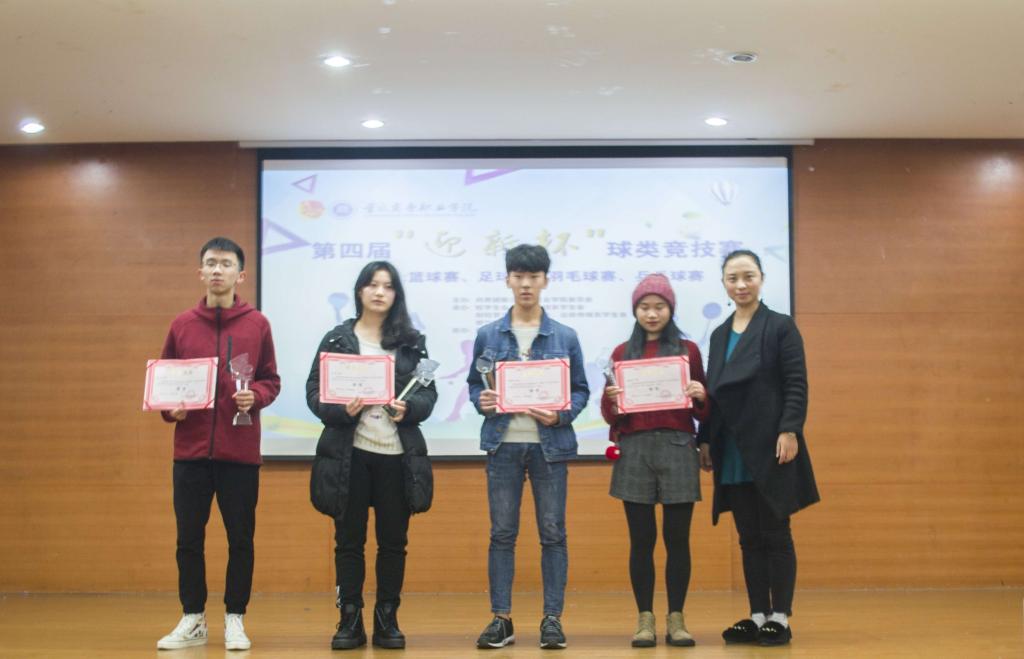 第四届“迎新杯”球类竞技赛闭幕式暨颁奖典礼于2018年11月12日中午在学生活动中心320举行。团委书记、学工部副部长邓健、团委副书记陈小容、出版传媒系团学办副主任向征、餐饮旅游学院团学办副主任汪小瑜、财经管理学院学团办干事周春梦、商贸管理系学团办干事谢蓉、全体团委老师以及300余名学生出席了活动。