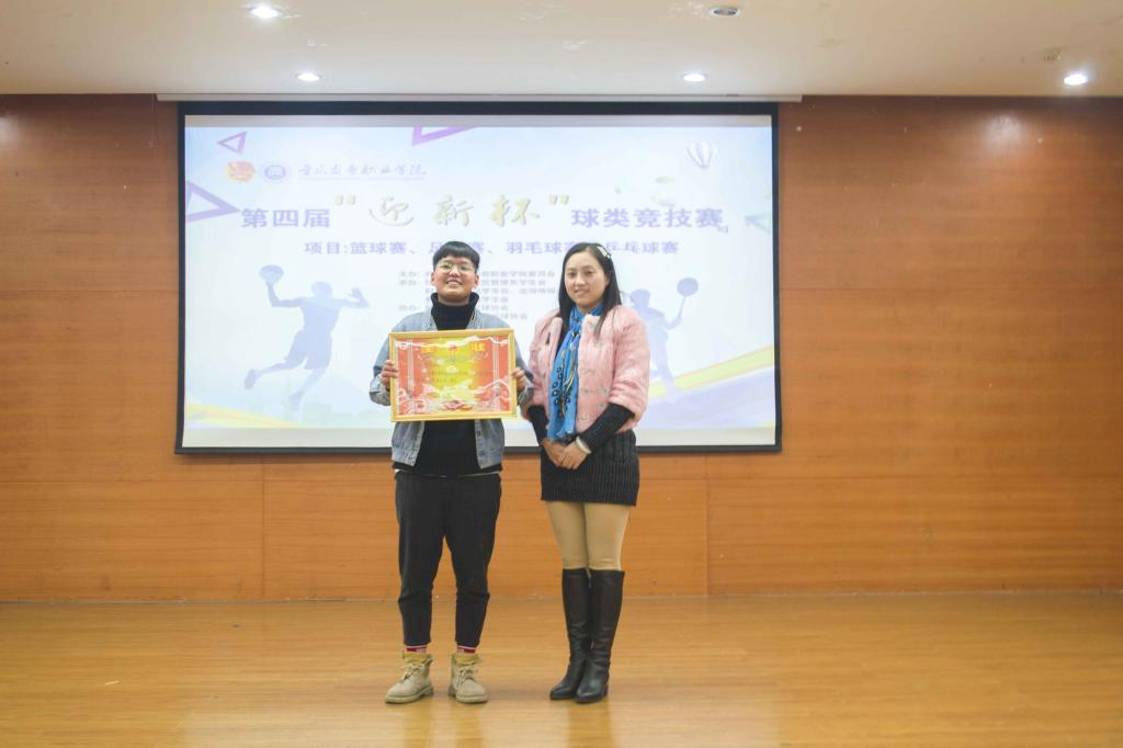颁奖典礼在精彩赛事回顾的视频中缓缓拉开帷幕。团委副书记陈小容宣读《重庆商务职业学院第四届迎新杯球类竞技赛获奖名单》。在场的领导和嘉宾为189名单项奖,9个团队奖,3个优秀组织奖,3个最佳团队奖获得者颁发了证书和奖杯。