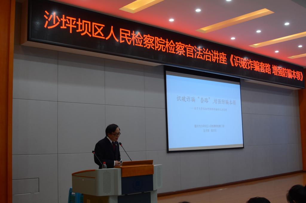 启动仪式结束后,沙坪坝区人民检察院检察官结合办案经验,通过以案释法,为青年学生带来一趟别开生面的法治讲座《识破诈骗套路 增强防骗本领》,正式拉开了学校 “法治进校园”暨“莎姐”进校园系列活动的序幕。