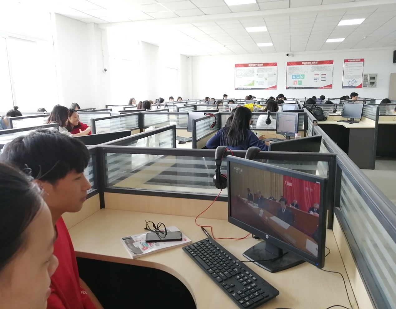 4月30日上午10:30,纪念五四运动100周年大会在北京人民大会堂举行。重庆商务职业学院团委组织青年教师、团学社学士干部、团员青年通过电视、网络等媒体观看纪念五四运动100周年直播盛况,聆听习近平总书记发表的重要讲话。