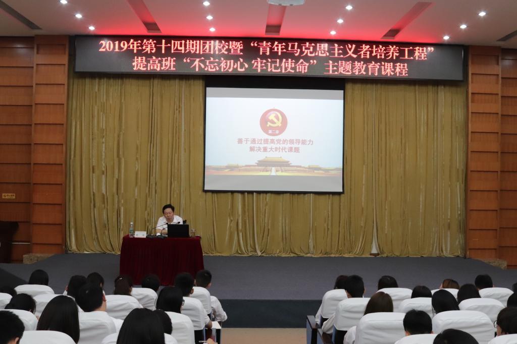 6月27日中午,副院长舒鸿在学校第一会议室为我校2019年“青年马克思主义培养工程”提高班全体学员带来了一堂题为“中国共产党为什么能”的“不忘初心 牢记使命”的主题教育课程。