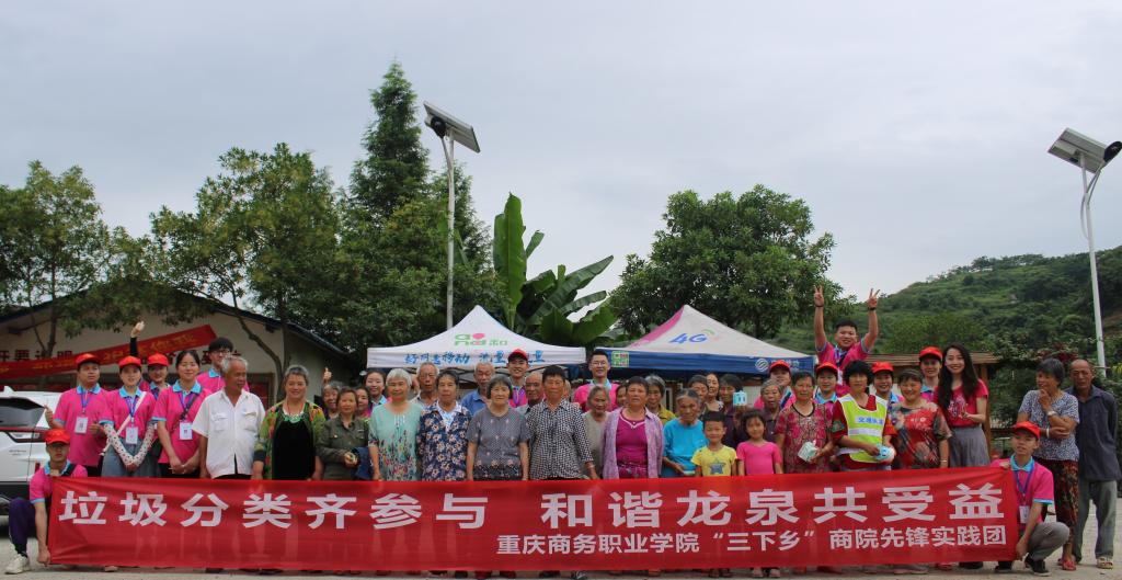 2019年7月11日,重庆商务职业学院16名团学干部骨干组建的“商院先锋实践团”来到沙坪坝区中梁镇龙泉村开展暑期“三下乡”社会实践活动。