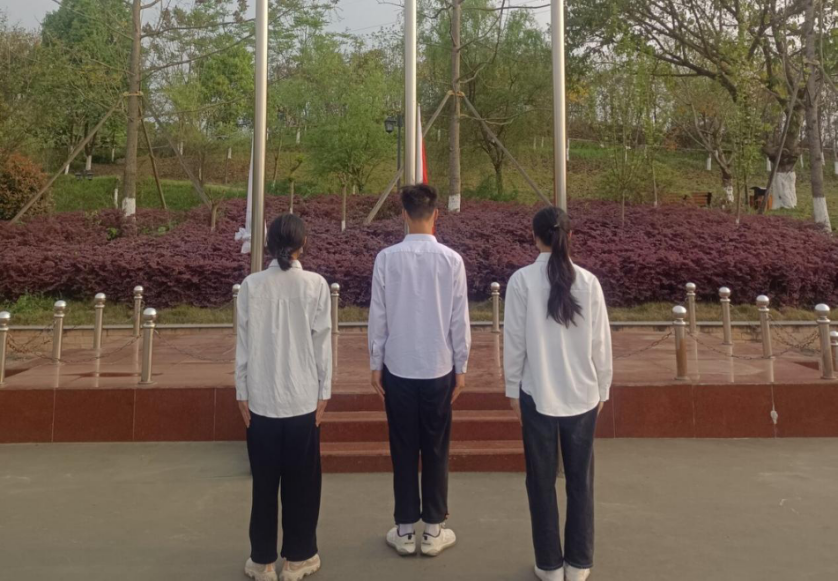 2022年3月24日早上,由胡青青,唐雪芬,冉征程三名队员排列整齐,迈着矫健的步伐,在《歌唱祖国》旋律中齐步走到升旗台前,“向国旗--敬礼”随着一声洪亮的口令升旗手冉征程奋力挥臂将国旗抛向空中。伴随着雄壮、嘹亮的国歌声,将鲜红的五星红旗徐徐升起,高高的飘扬在操场上空。嘹亮的国歌声,鲜艳的国旗下,庄严肃穆的氛围中,爱国爱校、奋发图强的情感在每个同学的心中激荡,每日的升旗仪式增强了学生的责任感和使命感,提高了学生的爱国热情,培养了学生的爱国情操。对于肩负重任的当代大学生,国旗引领我们找到了前进的方向,激励我们不断前进,为学校的发展和祖国繁荣富强做出更多的贡献