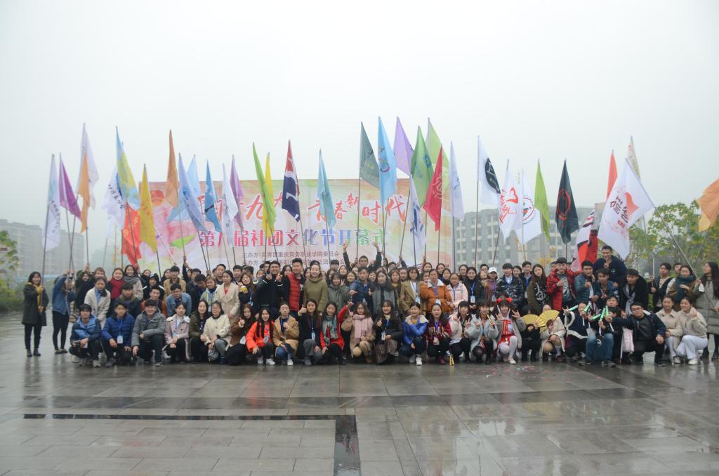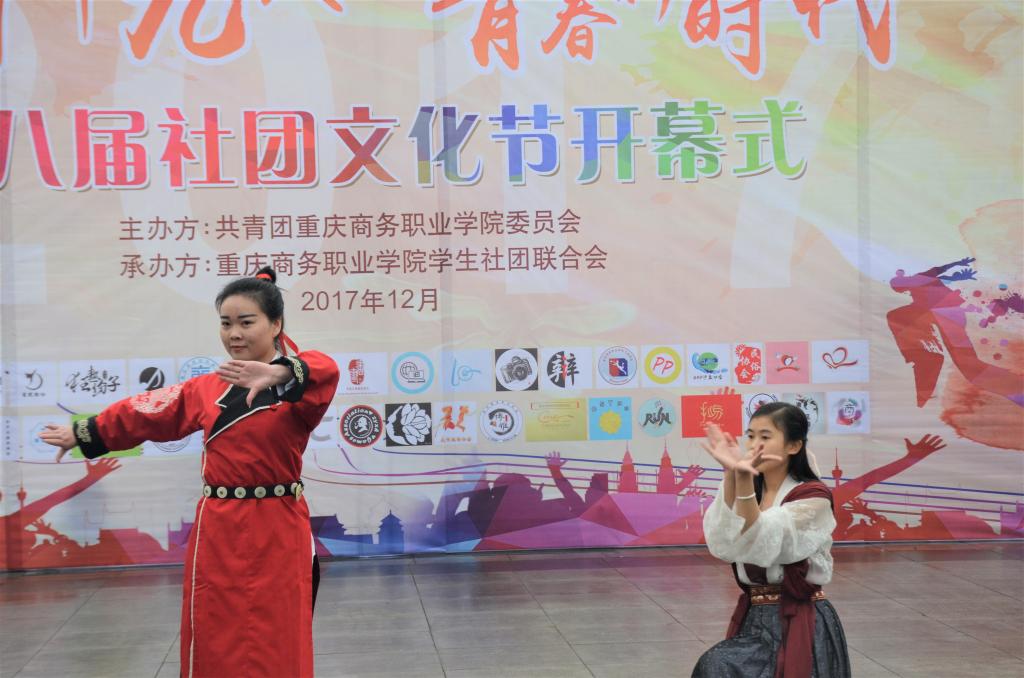 2017年12月13日中午,重庆商务职业学院“学习十九大青春新时代”第八届社团文化节开幕式在明德广场举行。学工部部长胡大勇、团委书记兼学工部副部长邓健、团委副书记陈小容、团委委员曾玉立、杨仁媛出席了开幕式,社团联合会主席李梦田主持了开幕式。
