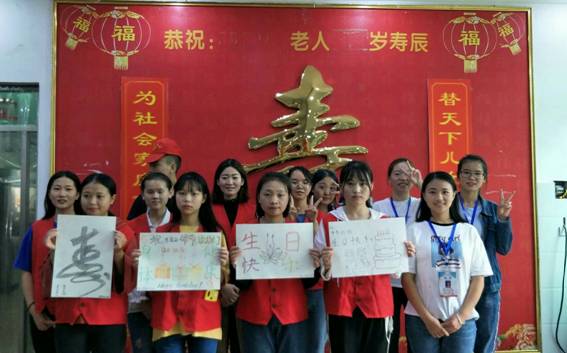 在宴会上,志愿者们为老人们带来了精心准备的节目。来自书法协会的志愿者们给老人们写了寿字,寓意福如东海,寿比南山。许愿、吹蜡烛、吃蛋糕,以及志愿者为老人准备的小礼物让老人们深受感动。