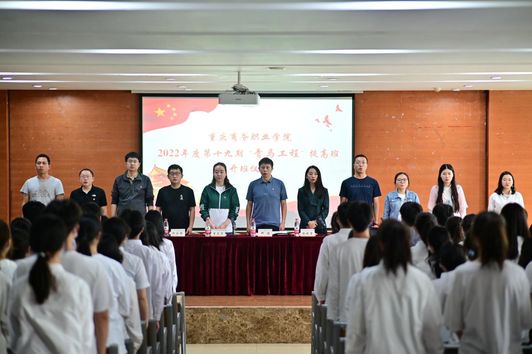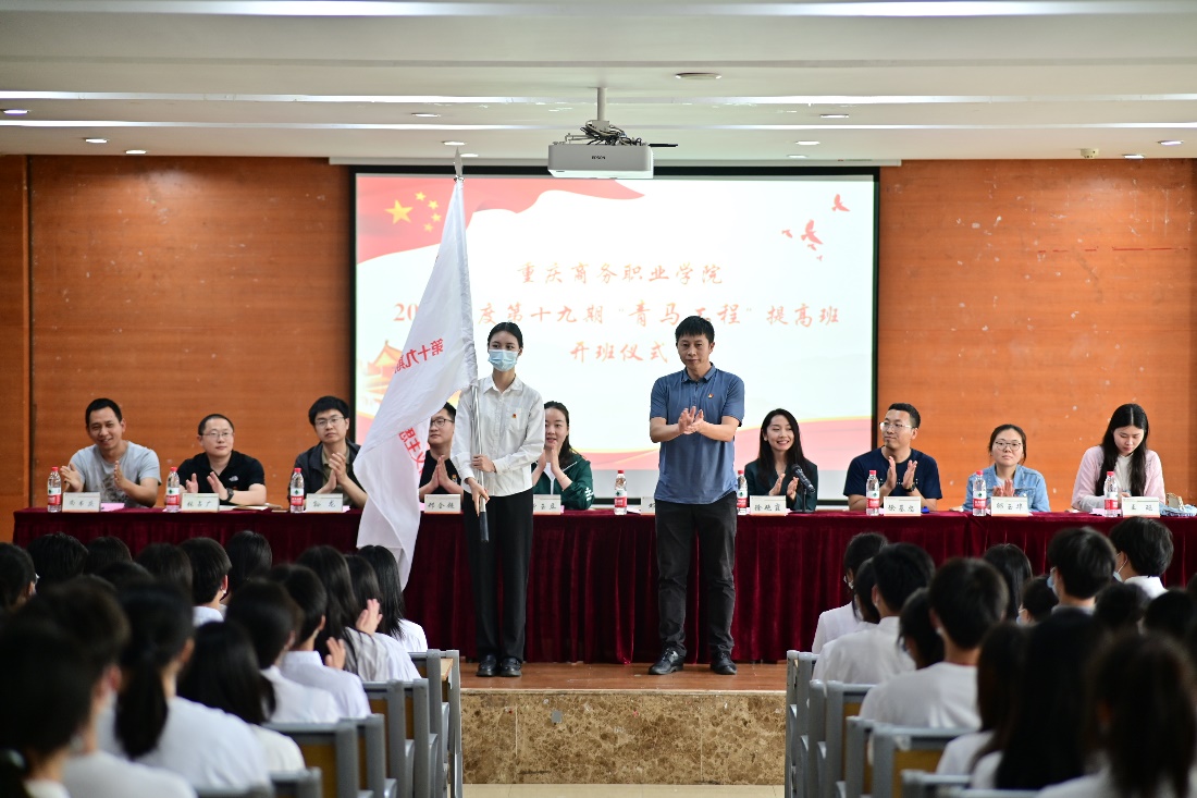 伴随着庄严的国歌,重庆商务职业学院“青马工程”培训班开班仪式正式开始。会议伊始,团委委员曾玉立宣读《关于同意成立临时团支部的批复》。接着,青马班学员代表杨发山发言,告诫学员们作为当代中国青年应与新时代同向同行、共同前进。最后,团委书记授予青马班代表田晶班旗。