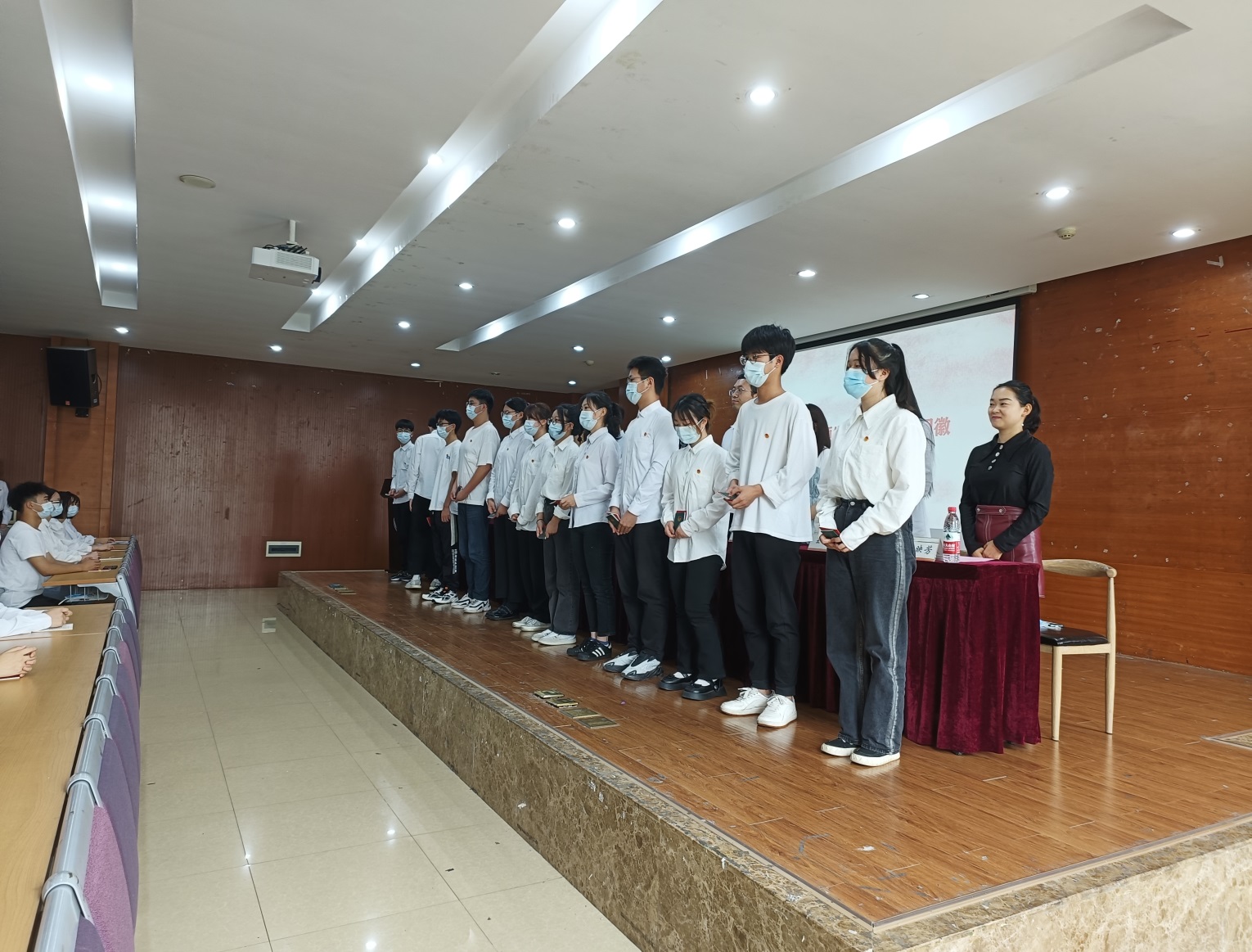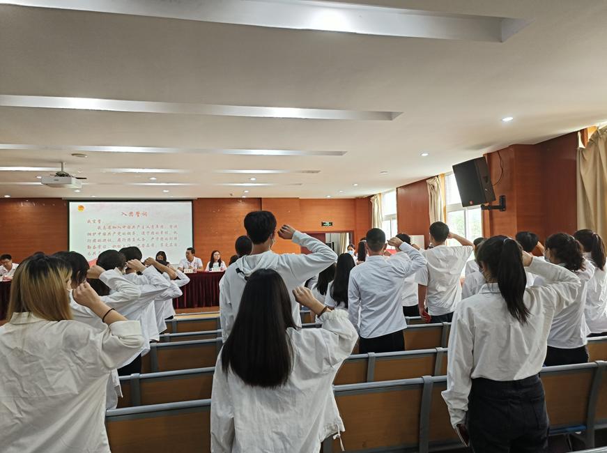 5月31日中午12点10分,在学生活动中心举行了2022年度新团员入团仪式。团委书记邓健、副书记白净、团委委员、二级学院团总支书记和新发展团员参加了仪式,会议由团委委员徐艳霞主持。