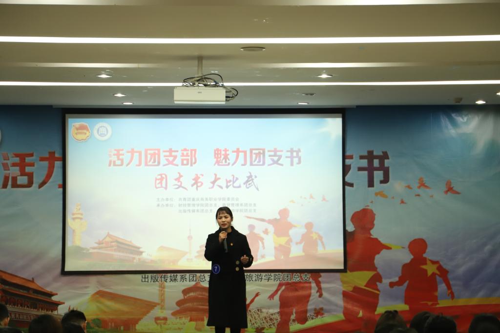 在微团课环节,团支部书记们泰然自若,紧紧围绕十九大报告精神、习近平总书记视察重庆重要讲话、党史团史、生态文明、婚恋交友、心理健康等内容为主题,为现场的老师和同学们带来了一场生动的主题团课。在团支部风采展示环节,团支书们或协支部团员一起,或独展风采,以朗诵、唱歌、舞蹈、相声、双簧展示等多种形式,展示了班级团支部的良好风采和团支书自身的综合素质。其中,餐饮旅游学院2018级酒店管理1班团支部书记传恩敏带来的独诵风采展示更是将本轮比赛推向了高潮。