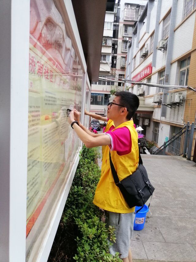 7月9日,志愿者走进桥南社区,为社区居民们带来一堂“精准扶贫·共建小康”的宣讲会。7月10日,志愿者走进崇贤社区为居民们发放“习近平总书记扶贫开发重要战略思想”宣传单,并进行问卷调查,同时,志愿者深入社区,听长辈们讲亲身故事,看社区巨变,学身边榜样,切身感受社会主义现代化建设和新中国成立70周年以来,特别是党的十八大以来百姓生活发生的巨大变化。此外,志愿者还积极参与社区文明建设,共同维护社区清洁卫生。