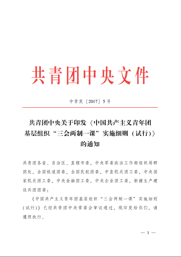 共青团中央关于印发《中国共产主义青年团基层组织 “三会两制一课”实施细则 (试行) 》的通知